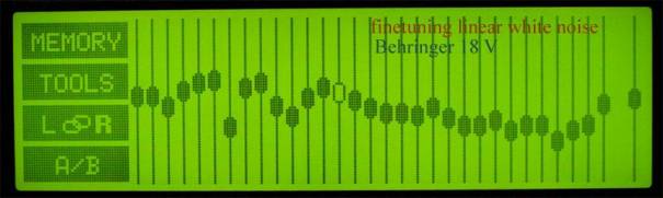 Take the Behringer Ultra Curve Pro 8024 for example. It works as a test facility with a 15 V internal feed. Because it is also a nice hardware EQ it provides all you need to correct your monitor boxes. In our case both different settings finally achieve a linear curve with the average function of Analyser Pro like this:
