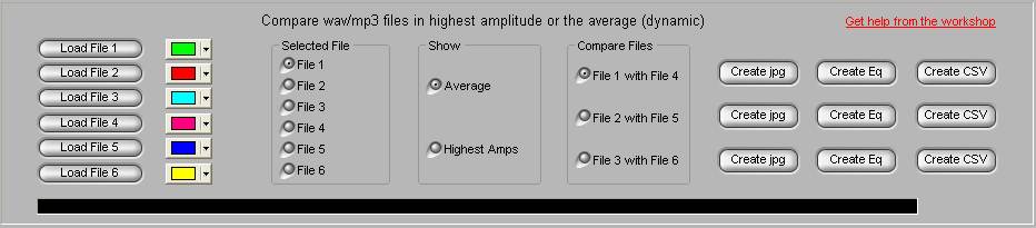 Now we have all 3 reference files loaded and we can start the comparison. Click on the "Highest Amps" in the Show radio group. Then in the radio group click "Compare Files", and then click on the first one "File 1 with File 4". This is what you should see::