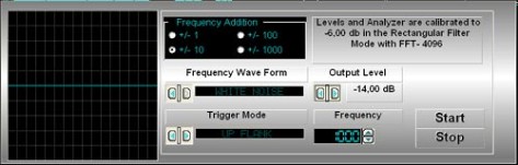 Now slowly set the volume from the amplifier to the same as the out level. Please do this very slowly! You should now hear white noise from the generator.
