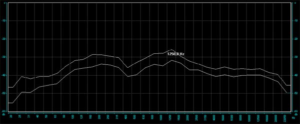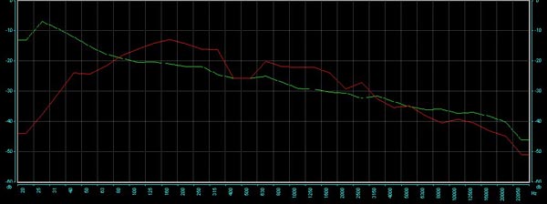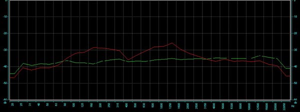 Here we have the white noise measurement. The green line is reference and the red is the Mic white noise file.