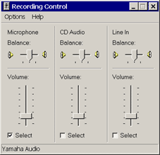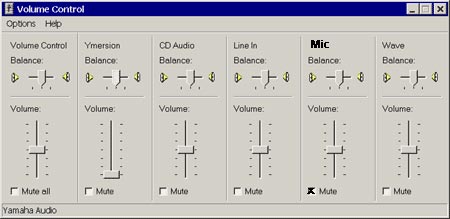 Select MIC as input. On some soundcards you have the possibility to select the wave as input, please be shure that you don't select that checkbox, otherwise the signal from our output goes directly back in the input.