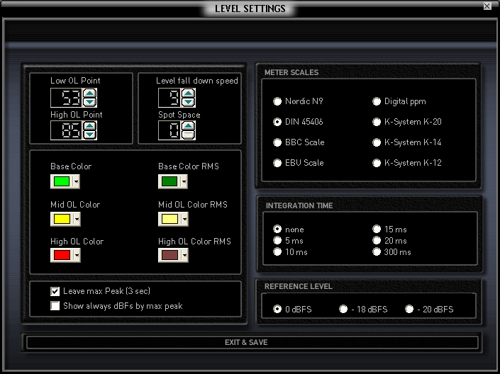 The commonly applied DIN45406 with a head room of 6 dB referred to digital 0, Nordic N9, BBC PPM, EBU PPM and the K-